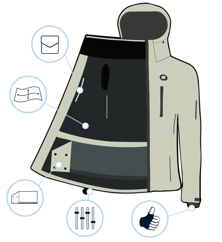 Our jackets are a slim, alpine fit. If your body measurements are between two sizes, we recommend sizing up. Additionally, if your chest and waist measurements result in two different sizes, order the size corresponding with the larger measurement.